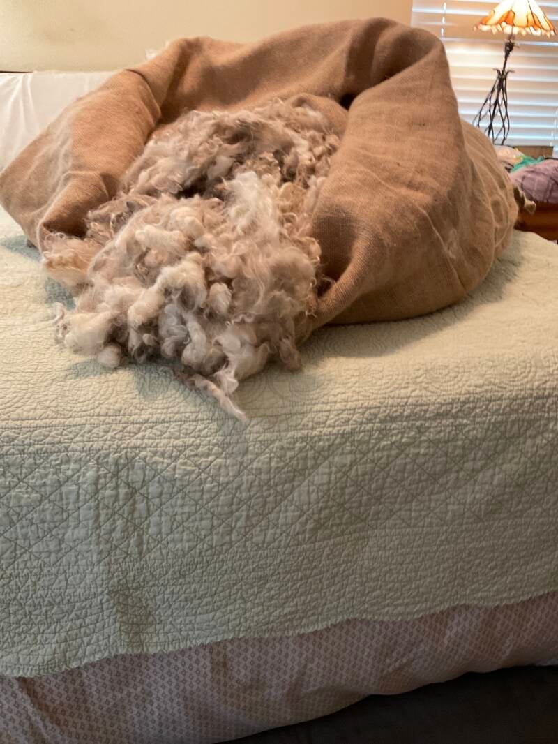 Those goats gave us 33 pounds of fleece!!!!